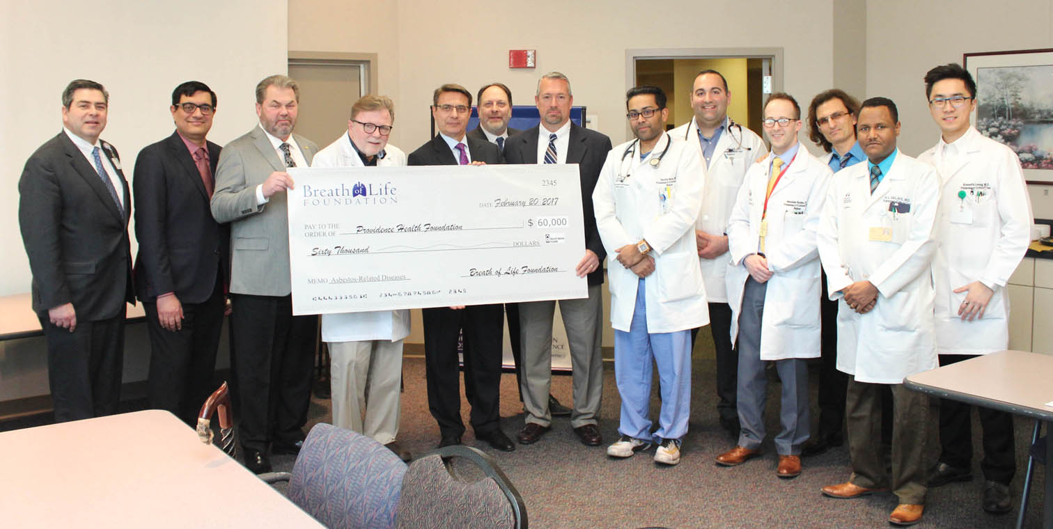 On Feb. 20, Breath of Life made a "Big Check" presentation to the Providence Health Foundation in the amount of $60,000 to help further the medical team's efforts. The funds are primarily raised through a golf fundraiser. Breath of Life has raised about $400,000 for asbestosis-related research over the past several years.