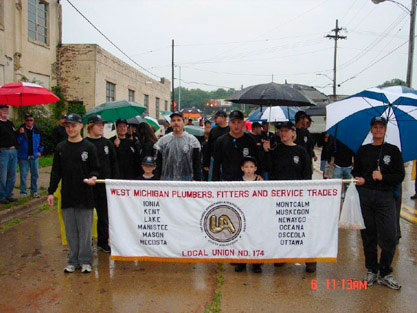 PLUMBERS, PIPE FITTERS and Service Trades Local 174 members and family got a little damp on Labor Day in Muskegon.