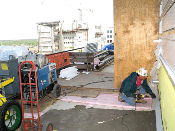 THE BACKING FOR the exterior skin of the Van Andel Institute is installed by Jim Reed of Sheet Metal Workers Local 7, working for Universal Wall.