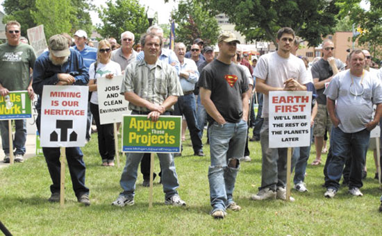 “Most Yoopers tell me the best social program is a job,” Marquette County Board of Commission Chairman Gerald Corkin told a cheering crowd. “Yoopers want paychecks, not welfare checks. So keep up the good fight for U.P. jobs.”