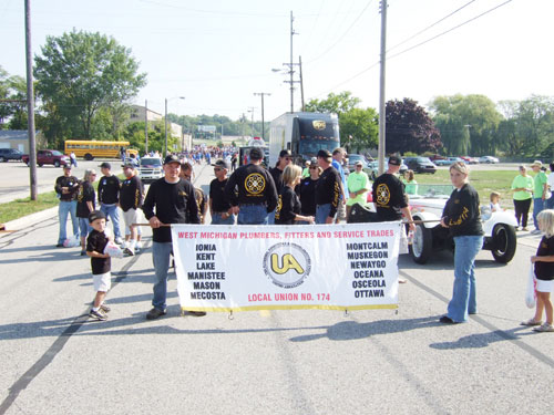 UA LOCAL 174 members await the start of the Muskegon march.