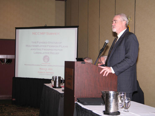 That was the gist of a March 2 presentation by Randy DeFrehn, executive director of the National Coordinating Committee for Multi-Employer Plans, to the Michigan Building and Construction Trades Council Legislative Conference. “Multi-employer plans have been hammered,” he said. “The federal government found money to bail out AIG, but they haven’t been willing to put out money for pension plans.”